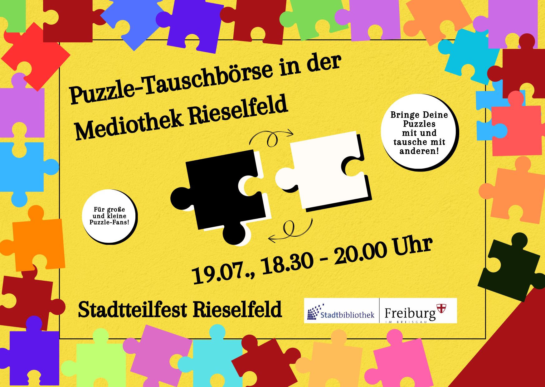Die Schränke sind voll, doch die Motive alle gepuzzelt und die Ferien stehen vor der Tür? Bringe Deine Puzzles mit und tausche mit anderen. Für große und kleine Puzzle-Fans.