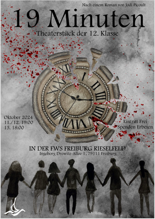Unsere zwölfte Klasse spielt dieses Jahr das Theaterstück "19 Minuten" nach einem Roman von Jodi Picault.