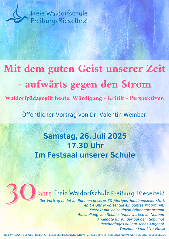 Am Samstag. den 26.07. spricht Herr Wember im Festsaal unserer Schule zum Thema "Waldorfpädagogik heute".