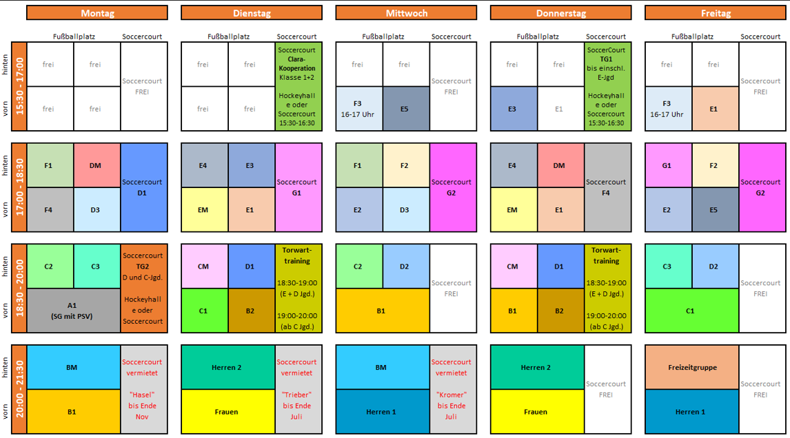 • Unsere Erwachsenen Teams (Frauen, Herren 1 + 2) trainieren max. auf einem halben Platz.